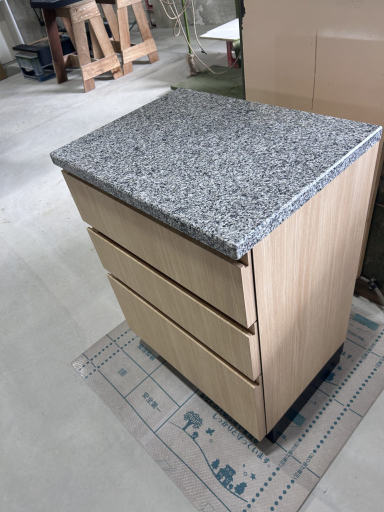 造作家具と石天板を同一工場内で一体製作が可能です‼️