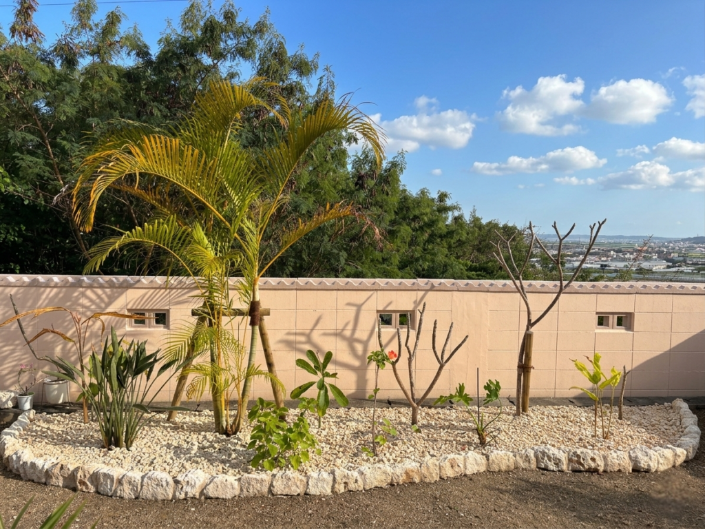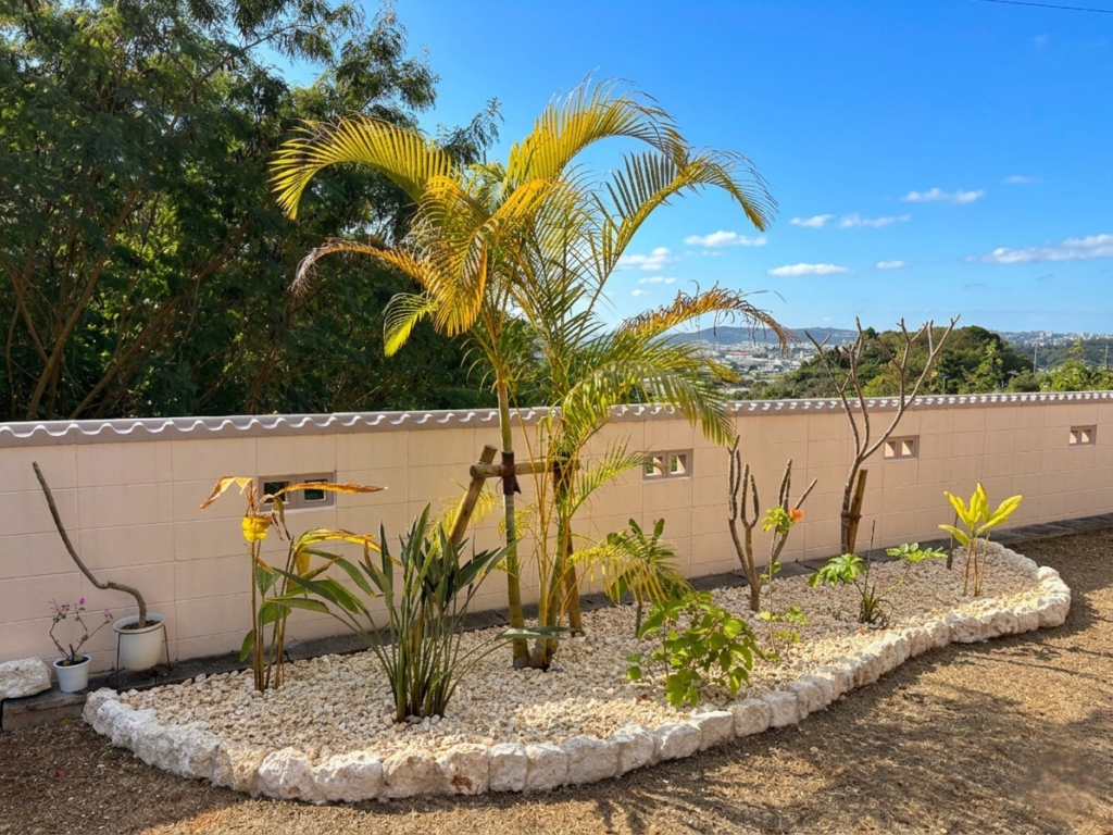 琉球石灰岩のグリ石とバラスで仕上げた南国ガーデン🌴