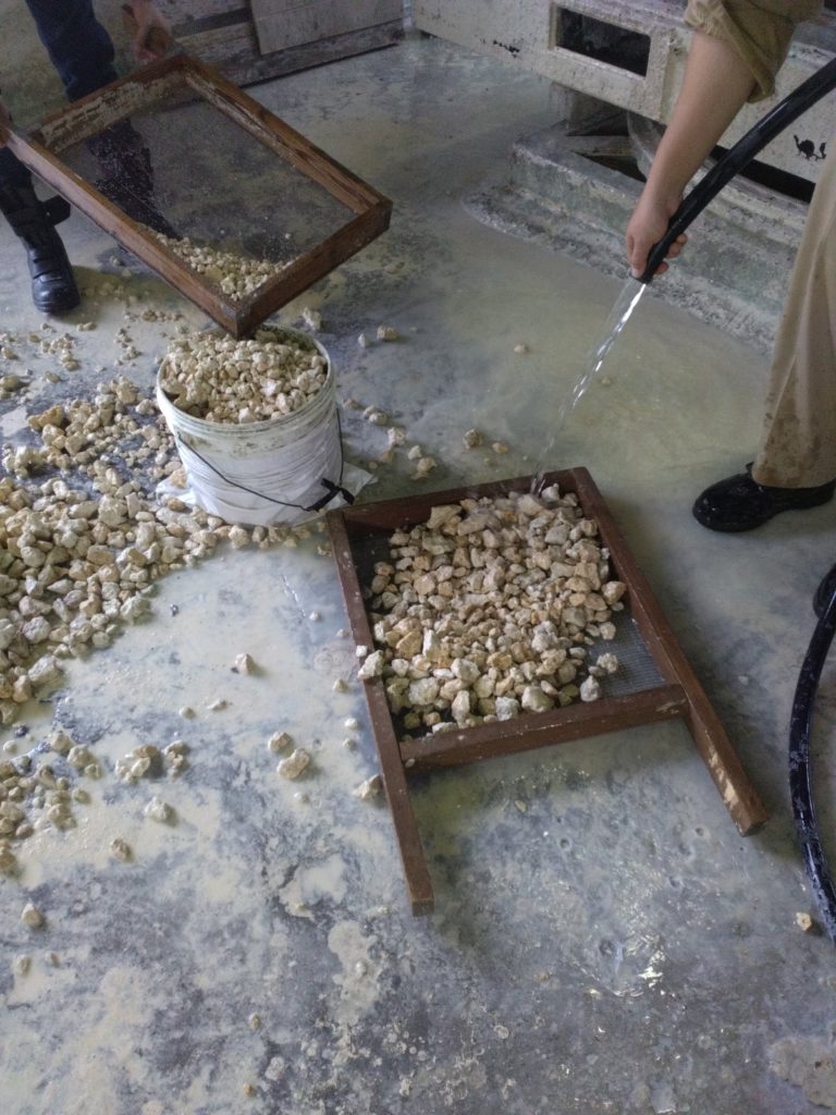 使用したグリ石とバラスは、