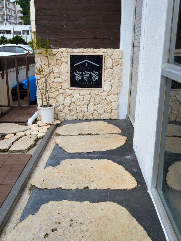 今回は、沖縄県名護市の店舗【Ryukyu Dining 家守家 様】にて、琉球石灰岩を使用した外構工事を行いました。