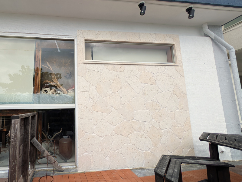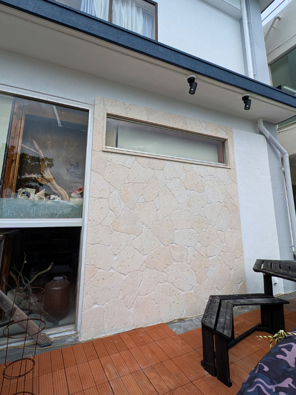 日はあいにくの天気でしたが、曇り空の中でも琉球石灰岩の存在感は際立っており、見る人の目を引く魅力的な仕上がりとなりました☺️