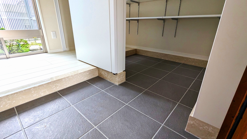 内装の壁や床、カウンターなどに使われ、優しい風合いと上品な色合いが魅力ですが、天然石のため色や柄に個体差があり、吸水性があるためシミになりやすいので屋内での使用がオススメです☺️