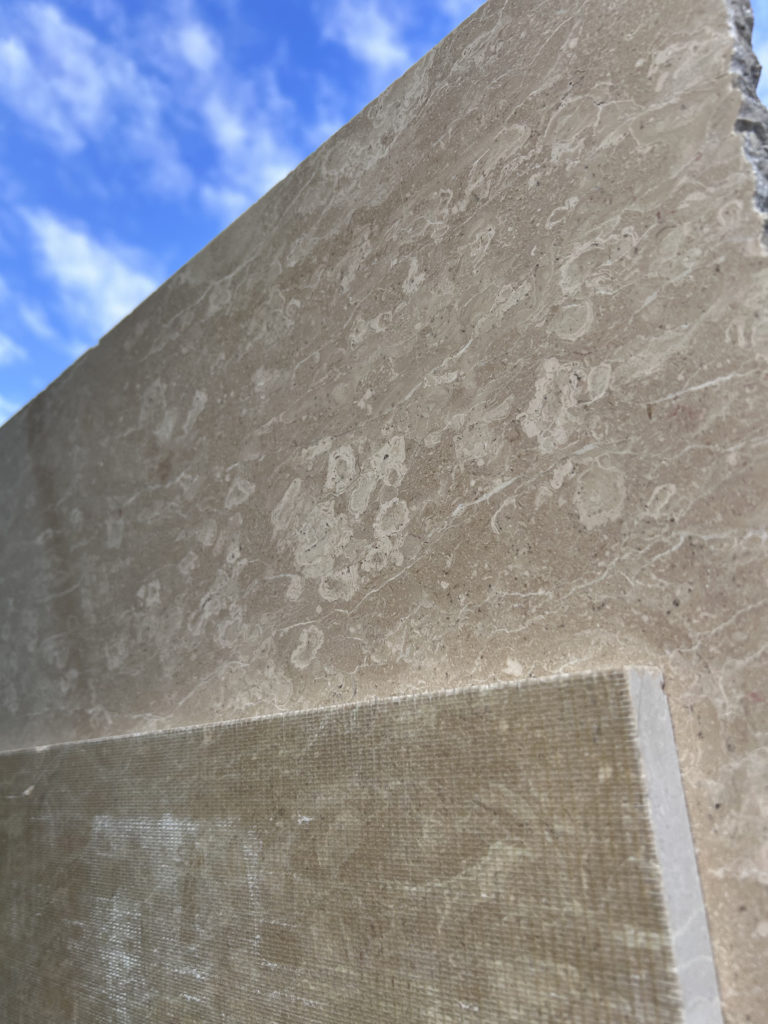 タイガーベージュ大理石は、明るいベージュ地に白っぽい模様が特徴で、控えめながらも高級感と温かみのある石材です。